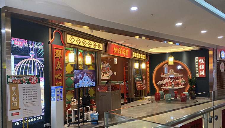 餐廳外觀通透,落地玻璃采光極好,很多顧客都喜歡坐在靠窗的位置,視野更寬闊,坐在店面最外圍的顧客,這時候也成了最佳招攬生意的招牌。