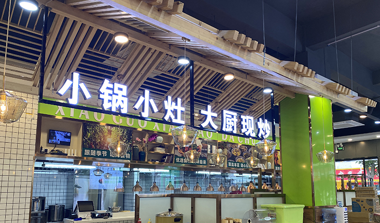 根據這些現狀,品深全案設計提出現炒快餐的概念,將廚房直接搬出來,所有的調味品,食用油都是用國內知名品牌全部展示出來,當著消費者的面,讓消費者直觀看見我們把菜品一份一份現場炒出來。當新鮮的食材、美味的小炒冒著鍋氣,讓消費者自己選,想吃什么選什么,想吃多少吃多少。做到了真正地“美味自選,豐儉由人”。消費者一下就被打動了,被南小碗現炒簡餐深深地吸引了。而品深全案設計又在門店的空間設計上和品牌文化墻上不斷強化“大廚現炒”快餐的優勢,強化品牌的核心優勢。生意迅速火爆,營業額持續穩定,最好的一家門店位于深圳西麗平山村,開業2個月就回本了,盈利非常穩定。