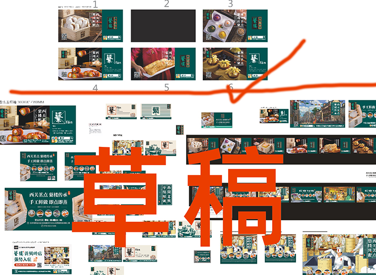 (我們也討論過多個品牌畫面方案如:用蘩樓百年的畫面及鮮做的手繪畫面來做為主題方案,但經過分析:看到這種畫面會讓顧客不知道蘩樓是做產品什么的,如果把產品放小,信息又太多;而只放品牌畫面就會認為:蘩樓就是個西關的什么樓,干什么的不知道,或者根本不感興趣,這樣會形成品牌誤解,不利于初級品牌的傳播。