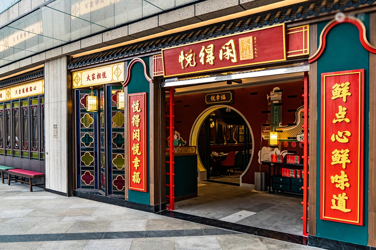 與此同時,在深圳市場由品深餐飲全案策劃設計的悅得閑茶樓第六家店(龍華壹方天地A區(qū)3樓3005號)也在7月21號迎來了正式開業(yè)。悅得閑廣式點心茶樓,全深圳第6家,來到了龍華區(qū),它奢侈的將西關大宅“搬”進來,讓人感受到最具老廣味的、最雅致的嘆茶生活。依然保持了品深餐飲設計既定的大紅配大綠的形象風格和文化體系,滿眼都是紅磚綠瓦,拱門回廊、傳統(tǒng)高雅也不失格調的裝飾,讓人眼前一亮。此次還加入了復古特色的大戲臺,處處都散發(fā)出一股濃厚的西關茶樓風情,可以一秒化身為西關小姐,在此和三五好友嘆茶談笑風生。