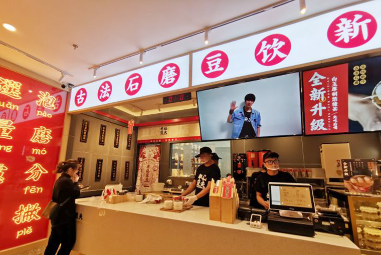 采用加拿大大豆,以古法石磨研磨豆?jié){,相對(duì)機(jī)器研磨,石磨研磨豆?jié){更香醇濃郁,石磨放置于品牌門店前,顧客能看到的位置,目的是