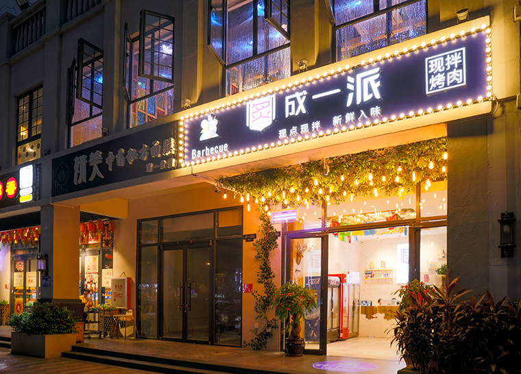 炙成一派是??谝患乙袁F(xiàn)拌現(xiàn)烤為特色的炙子烤肉店。品深餐飲全案策劃設(shè)計(jì)認(rèn)為空間裝飾裝修設(shè)計(jì)是品牌形象整體落地的核心環(huán)節(jié)。