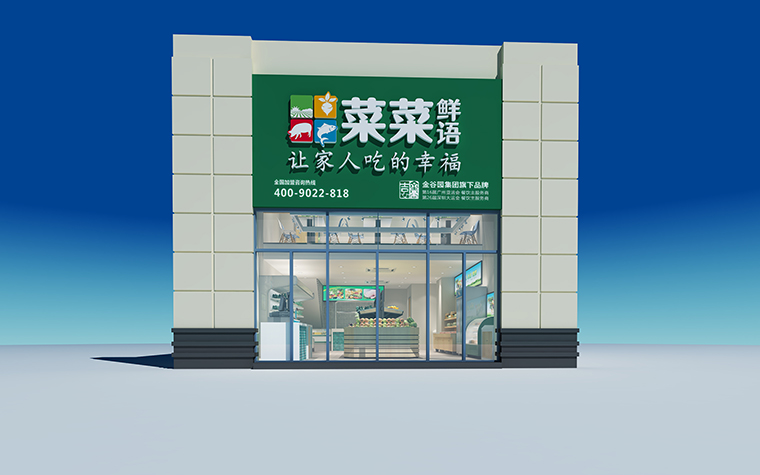 本次品深餐飲設計策劃服務的生鮮連鎖品牌為全案策劃設計服務。空間裝飾裝修設計的目的一是為了通過合理的空間功能規劃,使空間動線合理流暢,顧客多的時候也井然有序,運營效率高;二是為了傳達菜菜公社品牌高品質社區生鮮產品的定位,讓顧客有一種直觀的認知。