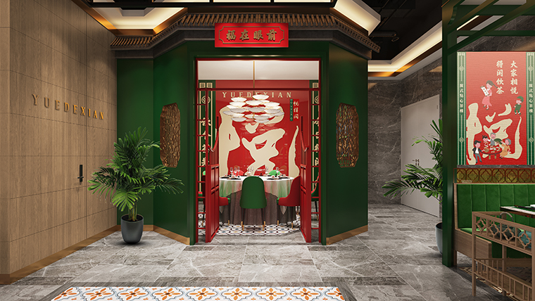 項(xiàng)目概述:悅得閑廣式點(diǎn)心茶樓是2019年品深餐飲全案策劃設(shè)計(jì)的品牌,從品牌命名到品牌VI形象設(shè)計(jì),空間裝飾裝修設(shè)計(jì),產(chǎn)品圖片拍攝,海報(bào)廣告設(shè)計(jì),空間軟裝設(shè)計(jì)全部品深餐飲團(tuán)隊(duì)系統(tǒng)化一體化解決。在2019年11月份首家店位于深圳龍崗上影影城,門(mén)店開(kāi)業(yè)以來(lái),獨(dú)特鮮明的形象,吸引力廣大食客的高度關(guān)注,經(jīng)營(yíng)業(yè)績(jī)持續(xù)穩(wěn)定,營(yíng)業(yè)額每月都過(guò)百萬(wàn)。悅得閑廣式點(diǎn)心茶樓也先后開(kāi)出了布吉南嶺店、福田馬成廣場(chǎng)店。隨著品牌的持續(xù)復(fù)制擴(kuò)張,悅得閑茶樓需要在門(mén)店渠道擴(kuò)大,不僅要布局在傳統(tǒng)800平米左右的街鋪,針對(duì)深圳眾多的商業(yè)綜合體,需要建立標(biāo)準(zhǔn)的商業(yè)綜合體門(mén)店,面積約在450平左右,餐位在180個(gè)左右,門(mén)店的營(yíng)建周期控制在90天之內(nèi),每平方硬裝修造價(jià)不超過(guò)2500元。此次,品深餐飲設(shè)計(jì)負(fù)責(zé)的就是悅得閑品牌首家綜合商場(chǎng)450平標(biāo)準(zhǔn)店的裝飾裝修設(shè)計(jì),門(mén)店位于坂田街道,吉華路佳華領(lǐng)匯廣場(chǎng)4樓。