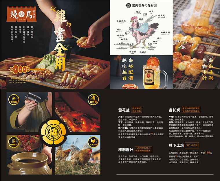 工作內容:日本料理燒鳥居酒屋市場定位策劃,燒鳥居酒屋品牌命名,爐端燒、割烹料理、燒鳥日本料理店VI形象設計,燒鳥居酒屋空間裝飾裝修設計,軟裝陳列設計,燒鳥居酒屋品牌故事,燒鳥居酒屋全案策劃設計。